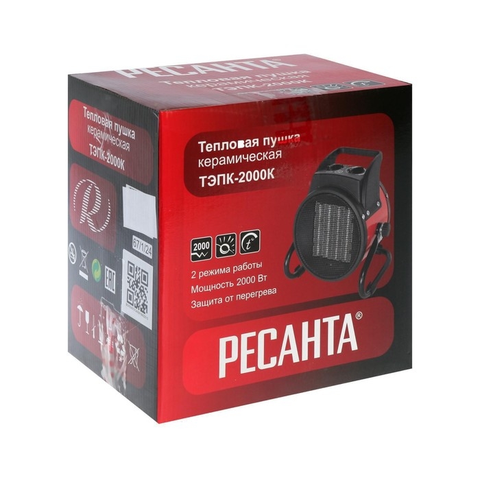 Тепловая пушка "Ресанта" ТЭПК-2000K, электрическая, 25/1000/2000 Вт, 120 м3/час