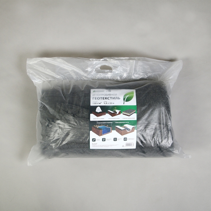 Геотекстиль иглопробивной, 20 × 1,5 м, плотность 150 г/м², с УФ-стабилизатором, чёрный, Greengo
