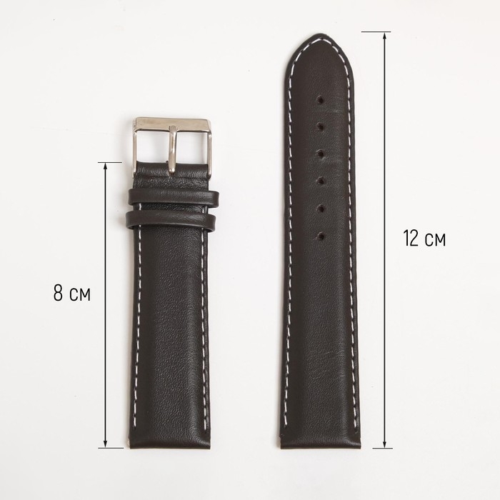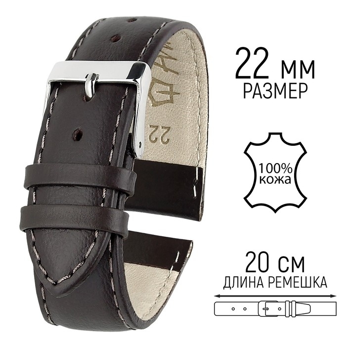 Ремешок для часов, мужской, 22 мм, запряжник 80 мм, горт 120 мм, натуральная кожа, тёмно-коричневый