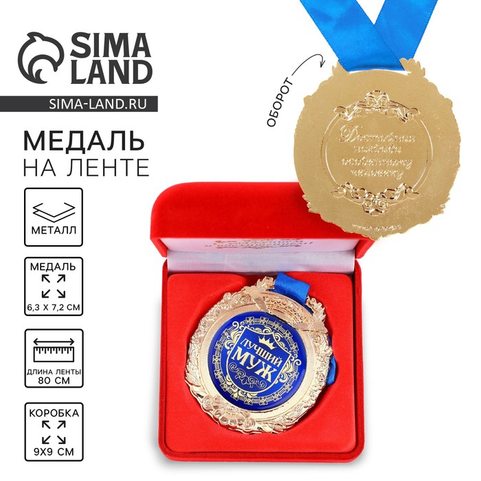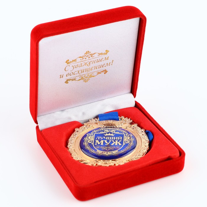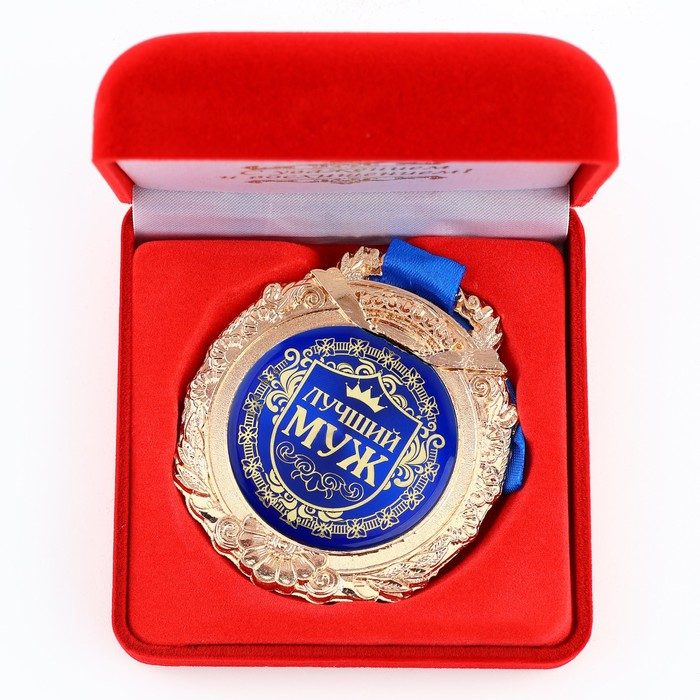 Медаль в бархатной коробке «Лучший муж», d= 6,5 см.