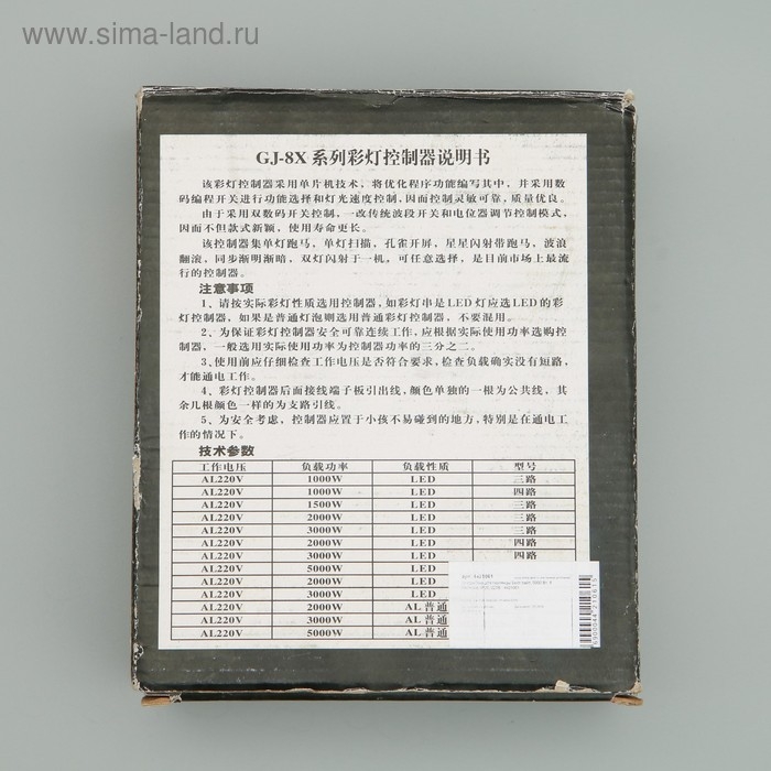Контроллер используется для создания различных световых эффектов. Он позволяет переключать режимы работы светодиодов, тем самым обеспечивая различные светодинамические эффекты — мигание огней, изменение цвета ламп, плавное затухание и многое другое. Напряжение питания - 220 В.