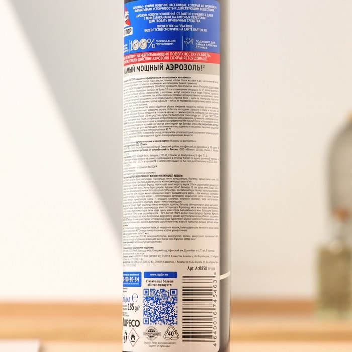 Способ применения: баллон перед использованием встряхнуть. Обработку проводить при открытых окнах. Распылять с расстояния 20 см на насекомых и места их обитания.