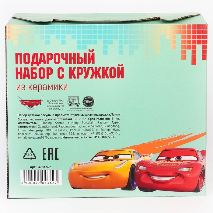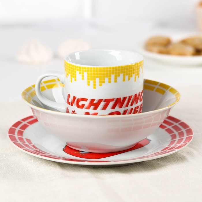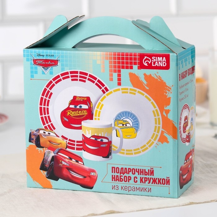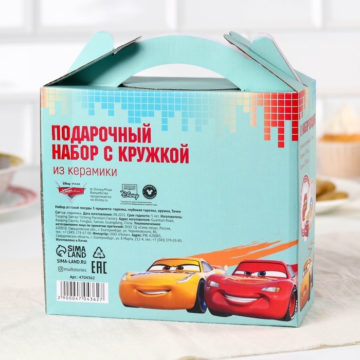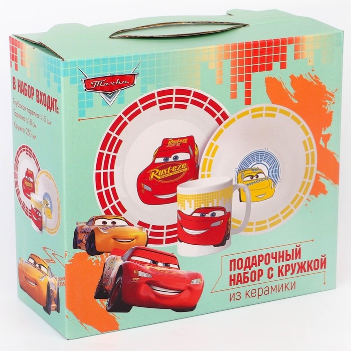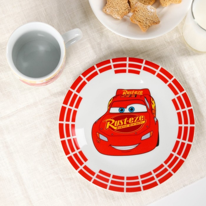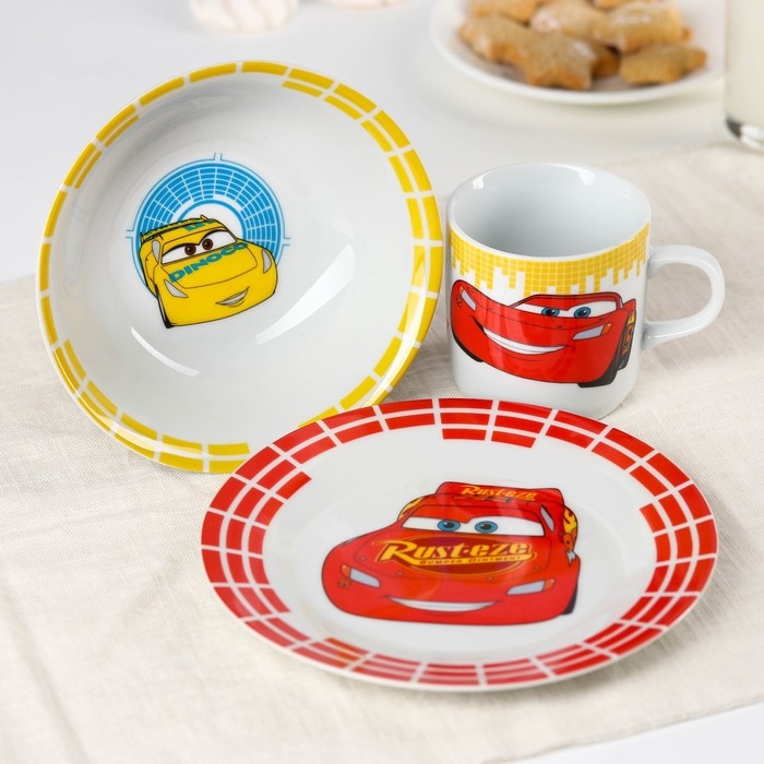 Набор посуды, 3 предмета: тарелка Ø 16,5 см, миска Ø 14 см, кружка 200 мл, Тачки