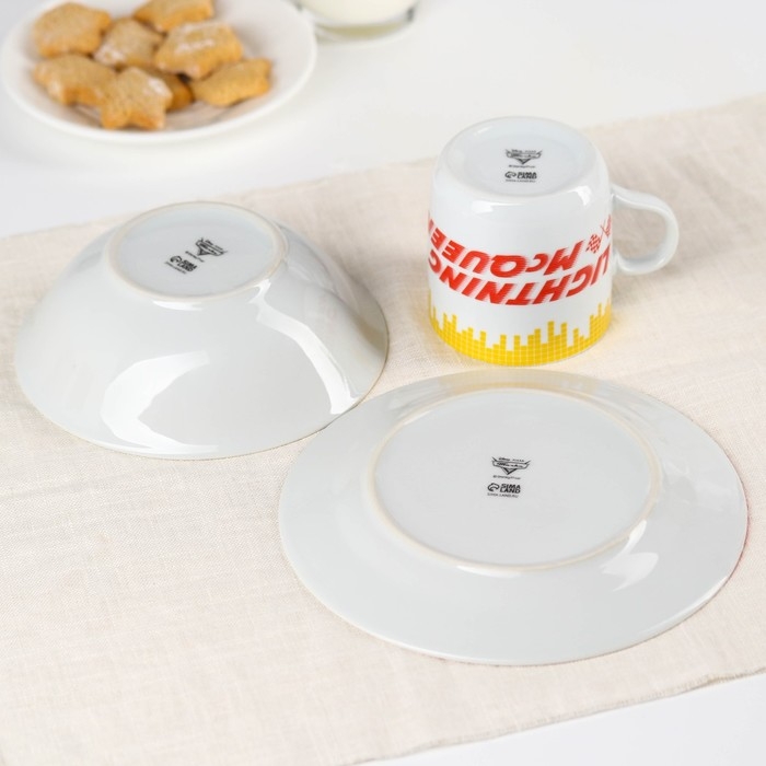 Набор посуды фарфоровой «Зоопарк», 3 предмета: тарелка d=20 см, салатник d=19,8 см, кружка 200 мл