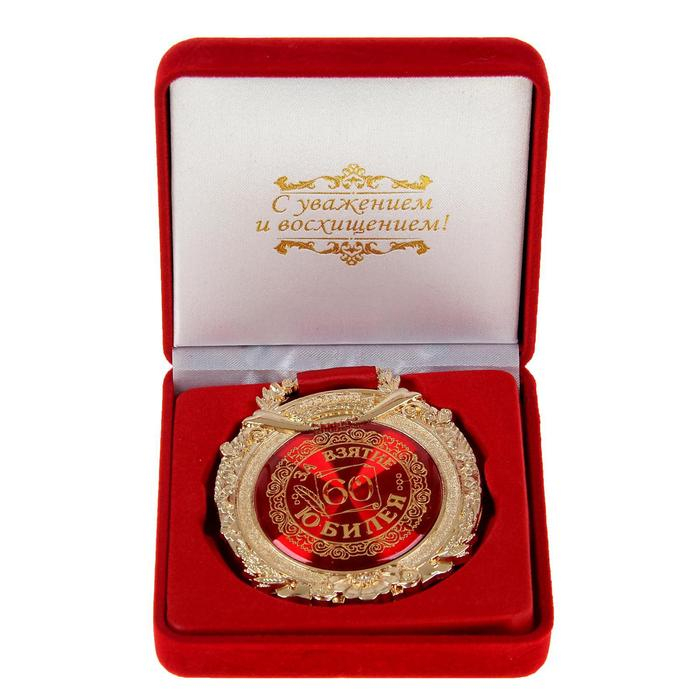 Медаль юбилейная в бархатной коробке «За взятие юбилея 60», d= 6,5 см.