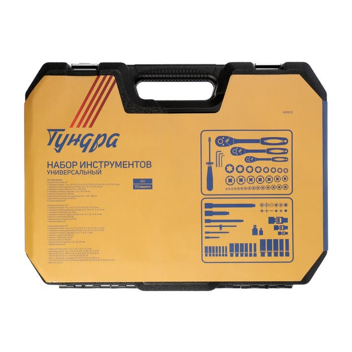 Набор инструментов в кейсе ТУНДРА, автомобильный, CrV, 1/2", 1/4", 3/8", 172 предмета