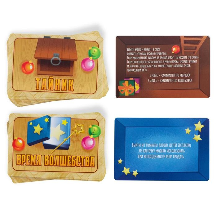 Новогодняя настольная игра «Новый год: MONEY POLYS. Фабрика Деда Мороза», 60 карт, 44 фигурки, 6 фишек, 2 кубика, 10+