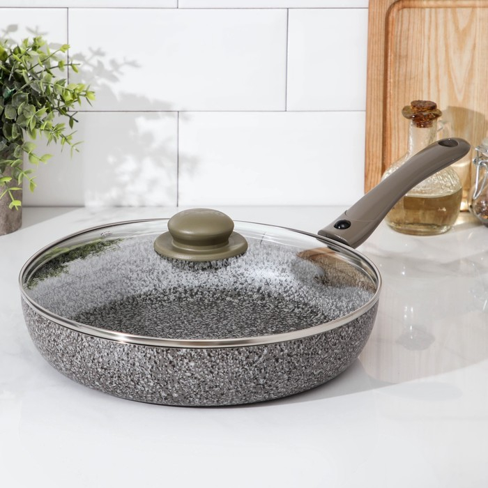 Сковорода Onyx, d=28 см, съёмная ручка, стеклянная крышка, антипригарное покрытие, цвет серый