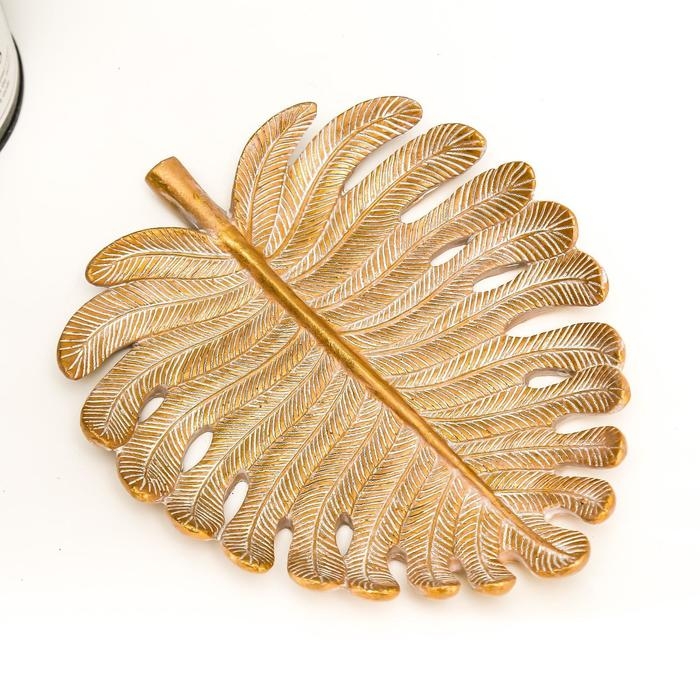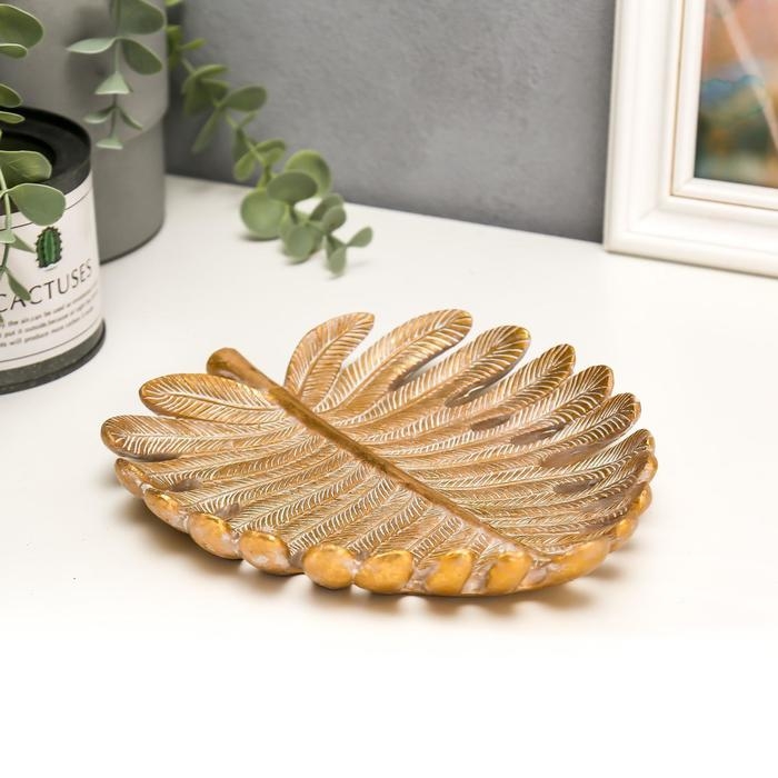 Сувенир полистоун подставка "Золотой лист монстеры" 3х20,5х17 см