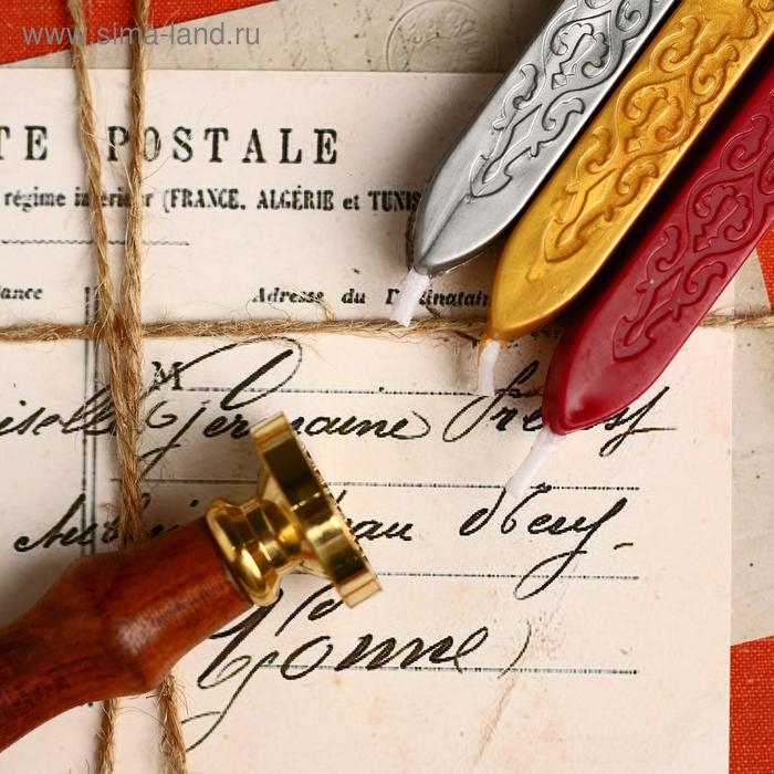 В набор входит сургуч в свечках, деревянная ручка, штамп