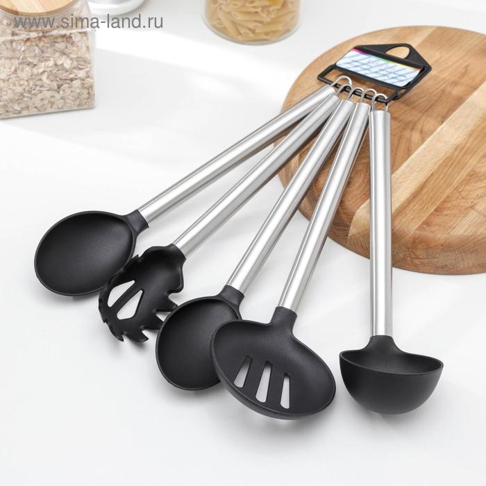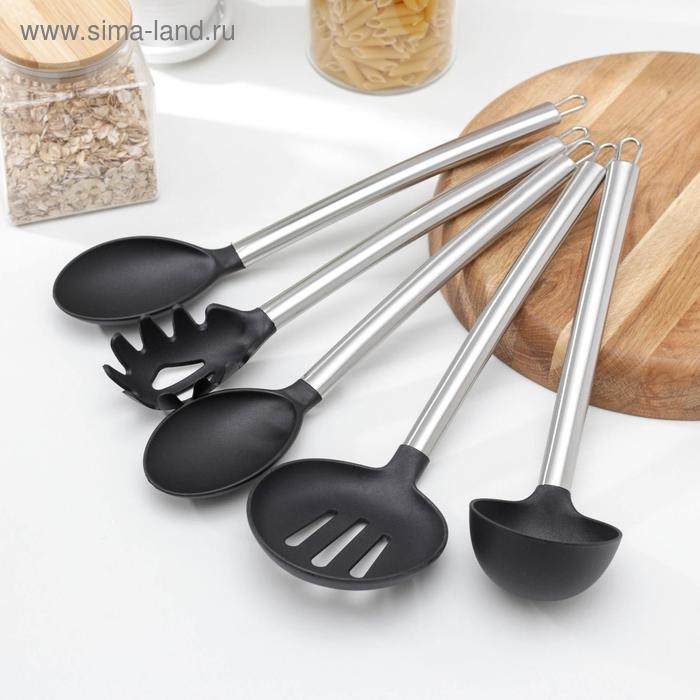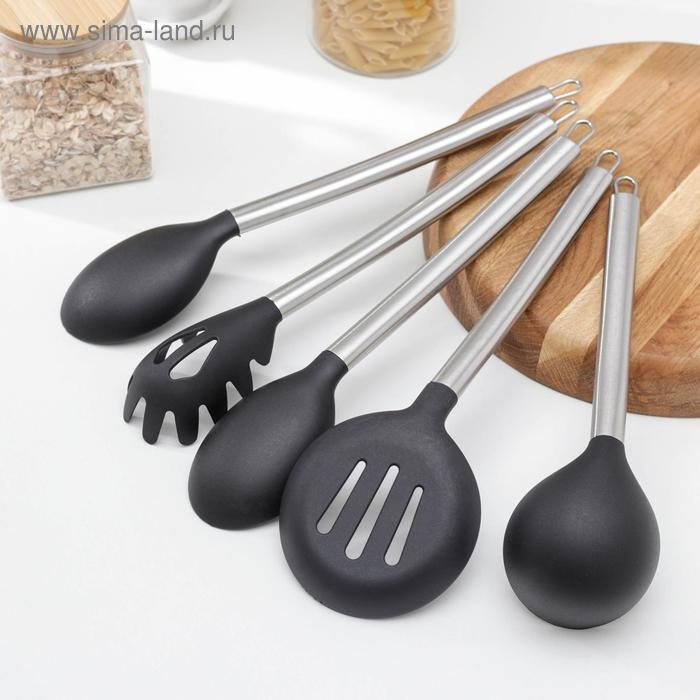 Набор кухонных принадлежностей Доляна «Антрацитовый блеск», 5 предметов, цвет чёрный