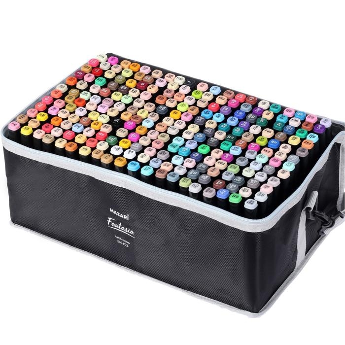 Маркеры для скетчинга двусторонние Mazari Fantasia, 204 цвета (2 маркера-блендера)