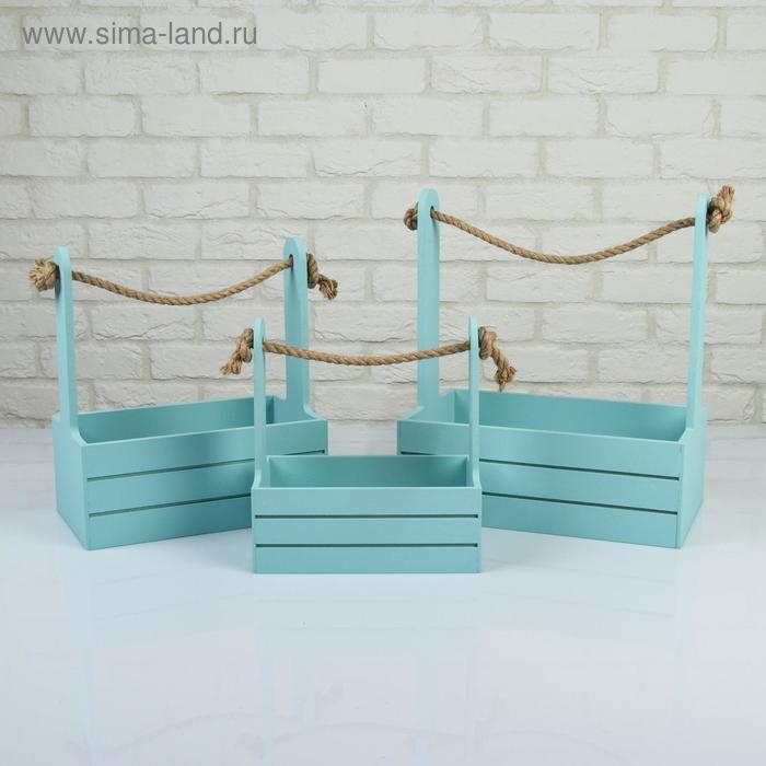 Набор кашпо деревянных 3 в 1 (30.5×18.5×35; 25.5×15×30; 20×12×23) "Аром", серо-голубой