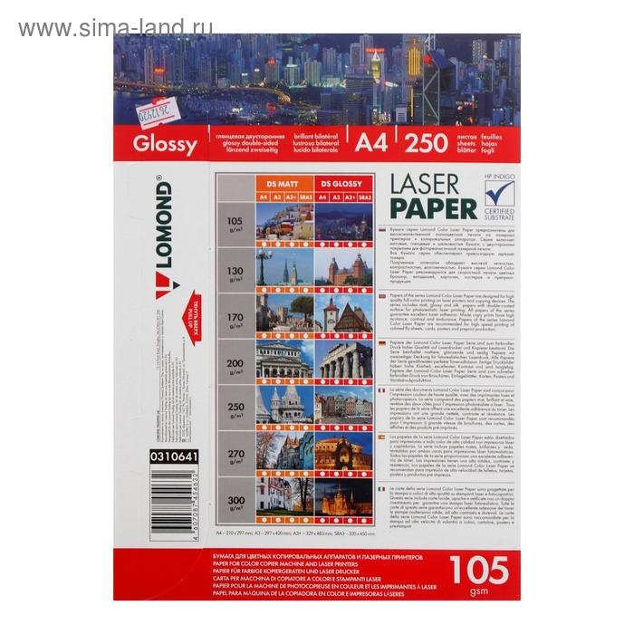 Фотобумага для лазерной печати А4, 250 листов LOMOND, 105 г/м2, двусторонняя, глянцевая (0310641)