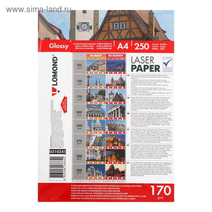 Фотобумага для лазерной печати А4, 250 листов LOMOND, 170 г/м2, двусторонняя, глянцевая