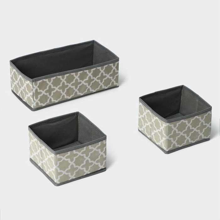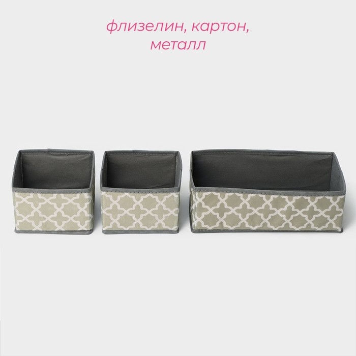 Набор коробов для хранения «Гранж», 3 шт: 28,5×14,5×10 см, 14,5×14,5×10 см, цвет серый