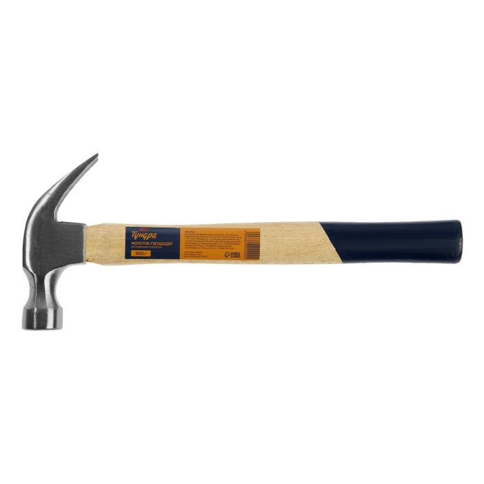 Молоток-гвоздодер ТУНДРА, деревянная рукоятка, 500 г