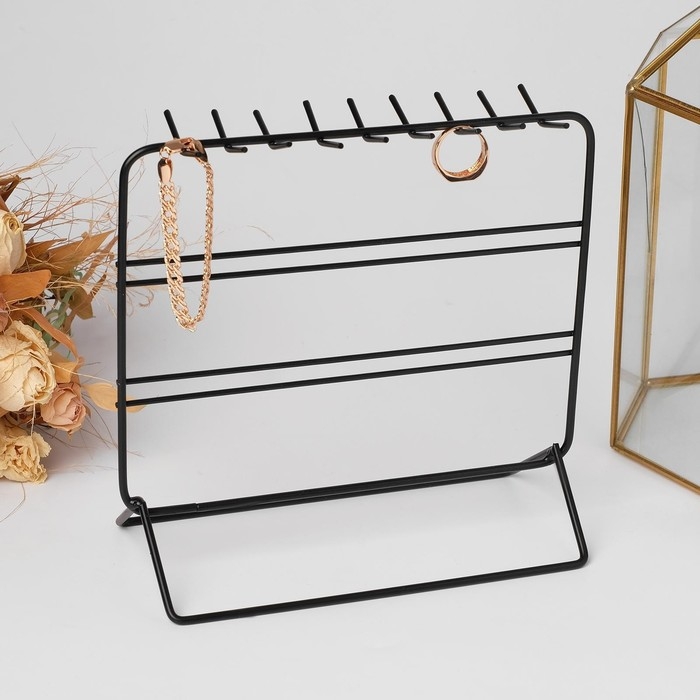 Подставка для украшений, 3 ряда, 20,5×10×19,5 см, цвет чёрный