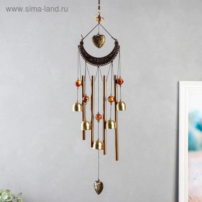 Музыка ветра металл, пластик "Ожерелье и сердце" 4 трубки 5 колокольчиков 54 см