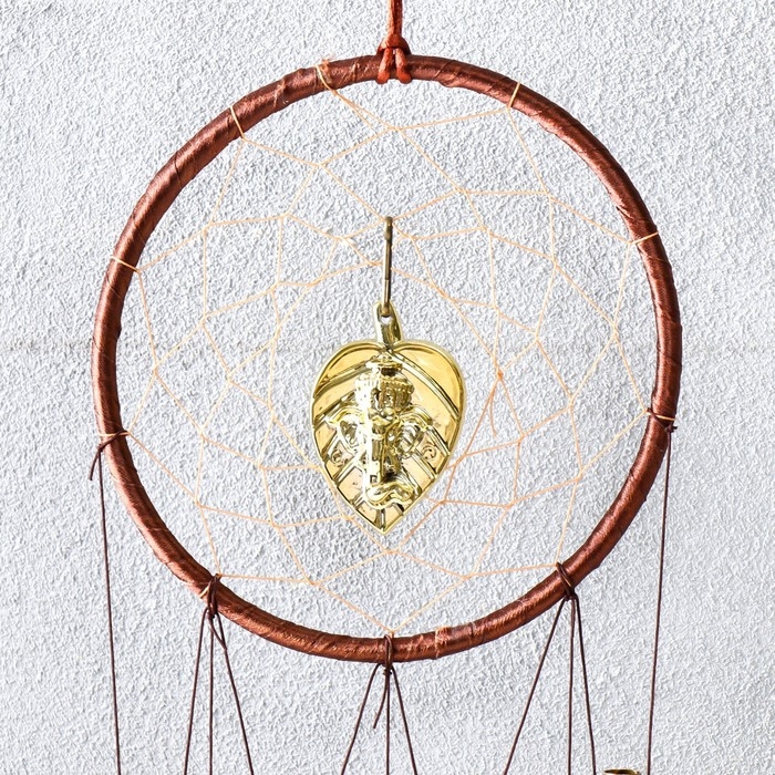 Музыка ветра+ловец снов "Ганеша в круге" 4 трубки 52 см