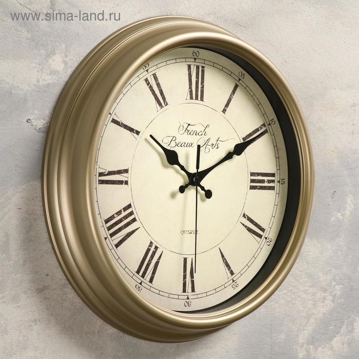 Часы настенные, интерьерные, бесшумные, d-30 см, белые с золотом