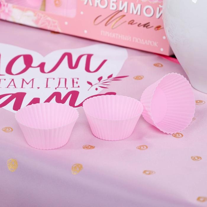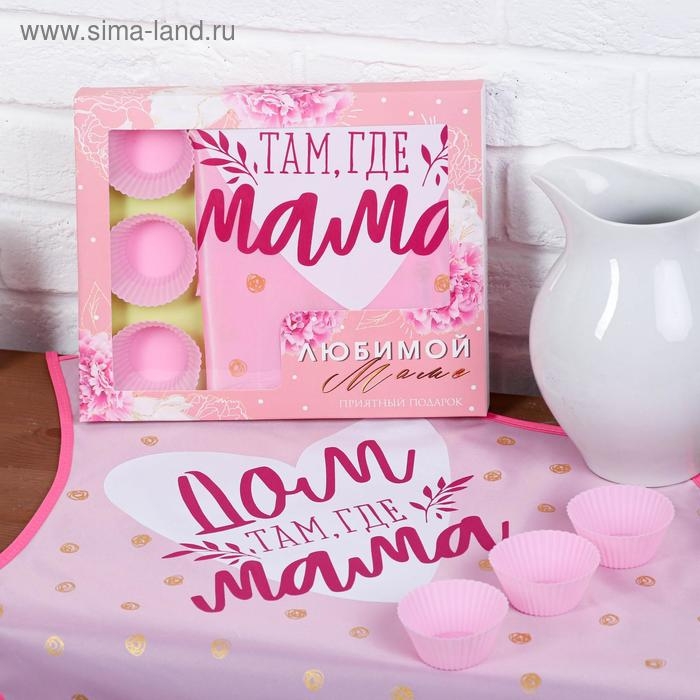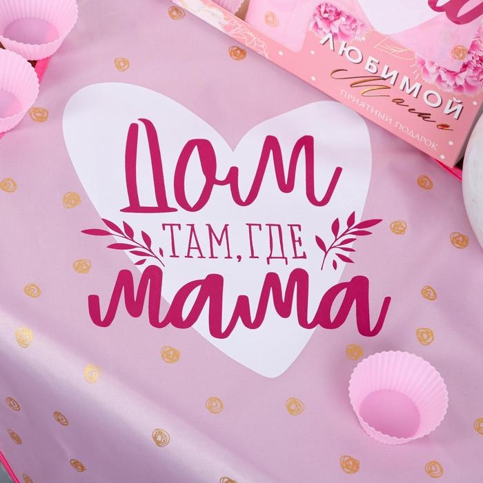 Набор «Любимой маме» кухонный фартук 50см х 70см и формы для выпечки