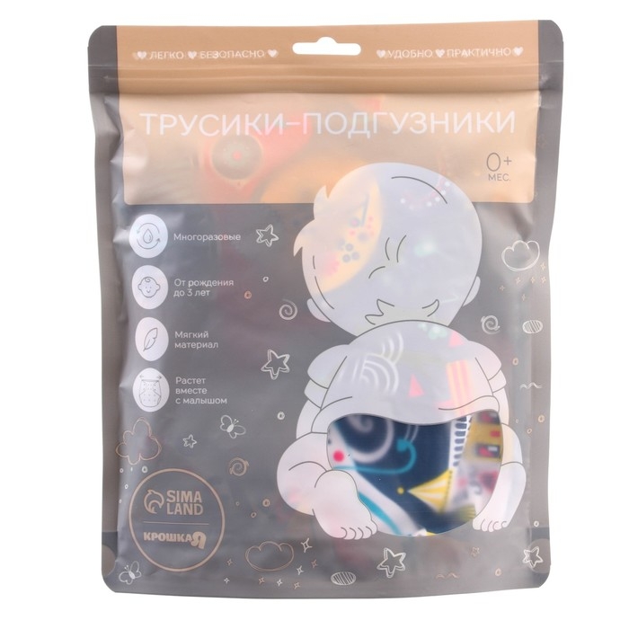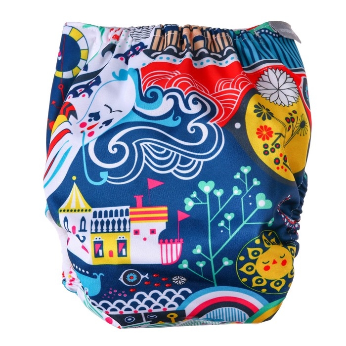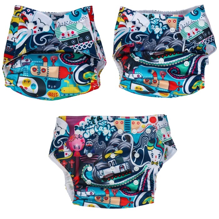 Трусики-подгузник, многоразовый «Океан» на кнопках (S,М,L), Крошка Я