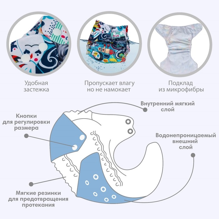 • Размер подгузника универсальный, подходит для детей от 3 до 15 кг, от рождения до 3 лет;