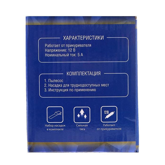 Пылесос автомобильный, 60 Вт, 12 В, белый