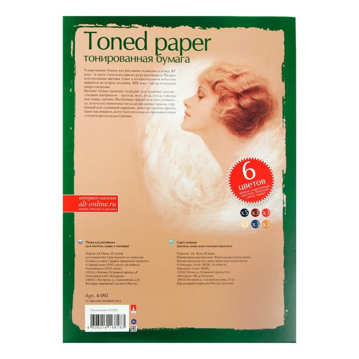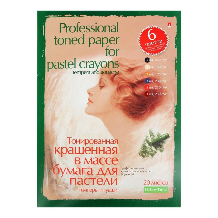 Бумага для пастели А4, 20 листов "Профессиональная серия", 6 цветов, блок 150-230 г/м2