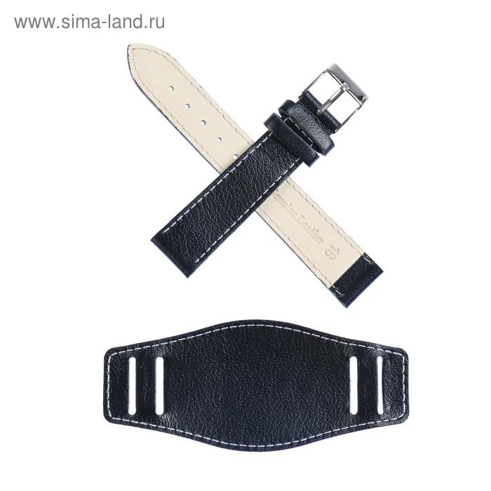Ремешок для часов, мужской, 18 мм, запряжник 75 мм, горт 115 мм, натуральная кожа, чёрный