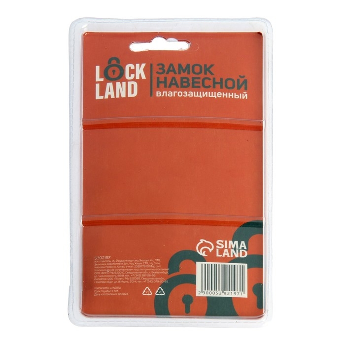 Замок навесной LOCKLAND, 50 мм, влагозащищенный, длинная дужка, 2 ключа, цвет черный