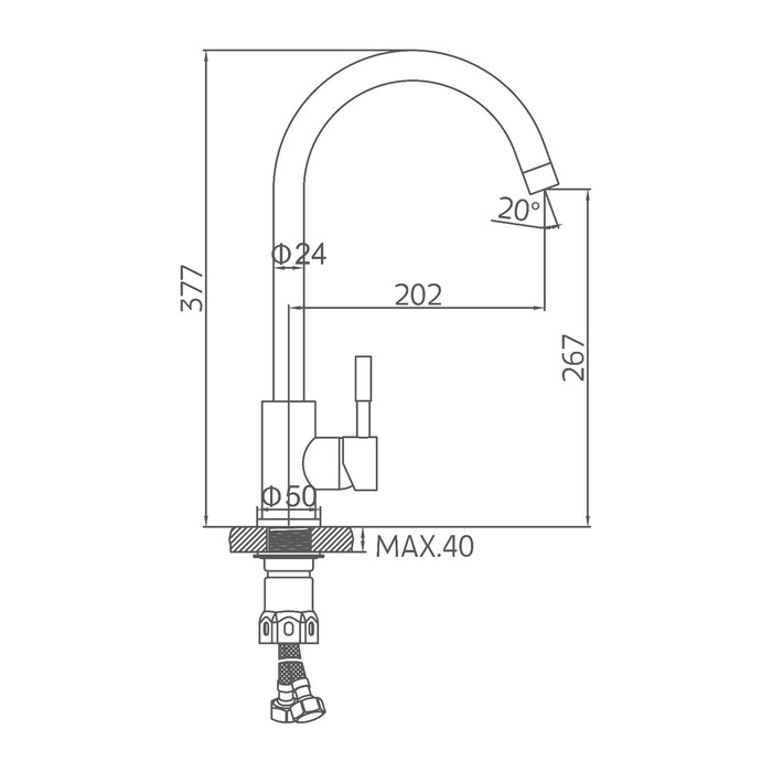 Смеситель для кухни Accoona A4590A-2, однорычажный, с гайкой, сатин