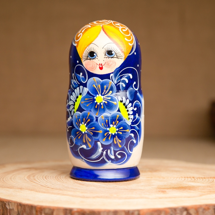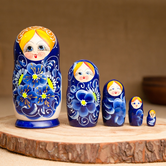 Матрёшка 5-ти кукольная "Нина" синяя , 14-15см, ручная роспись.
