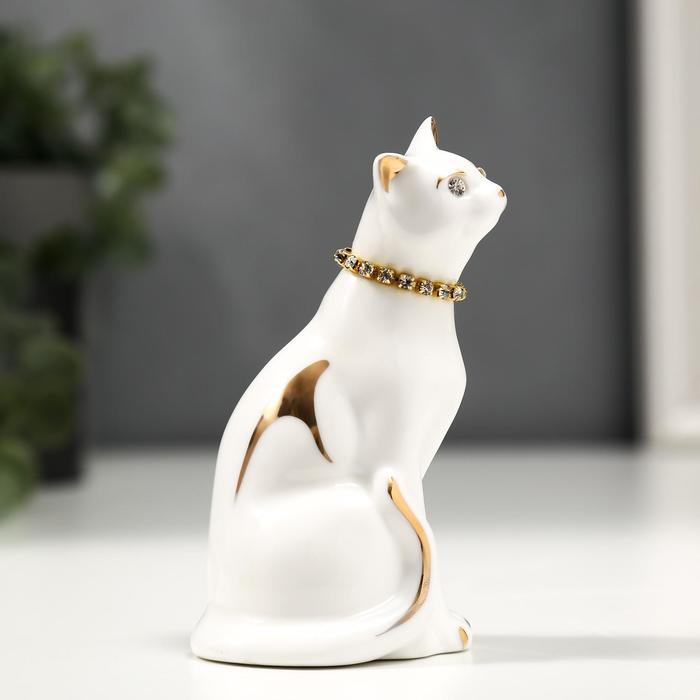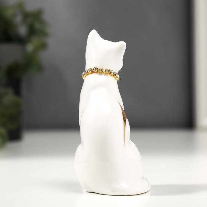 Сувенир керамика "Белая кошечка с ожерельем" с золотом, стразы 9,5 см