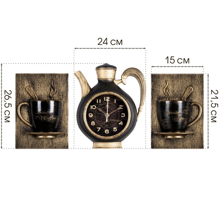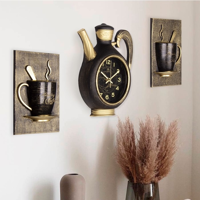 Часы настенные интерьерные для кухни "Сангино", бесшумные, 26.5х24 см, чёрные с золотом, АА