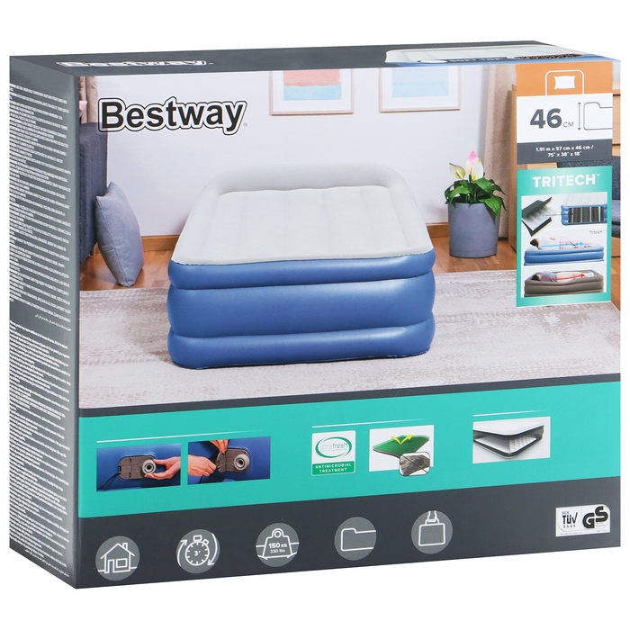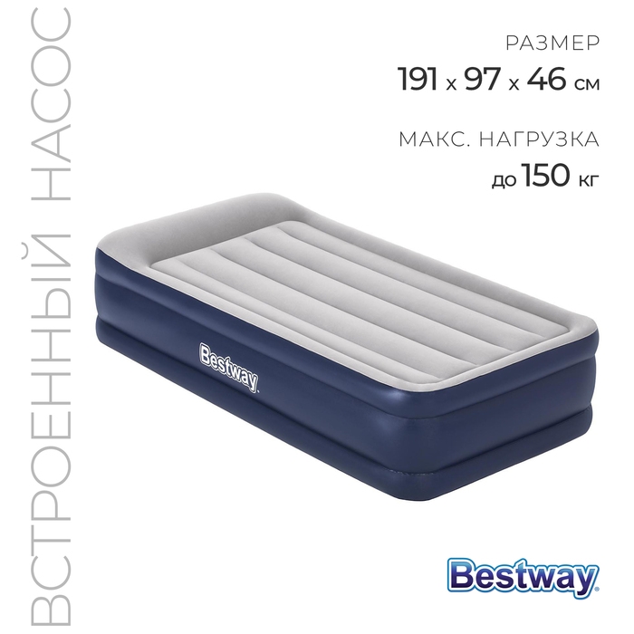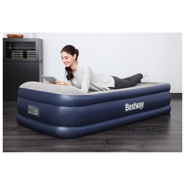 Односпальная надувная кровать подходит для размещения гостей в доме и отдыха на природе. Изделие имеет внутренние перегородки, благодаря чему сохраняется первоначальная форма товара и обеспечивается долгий срок его службы.