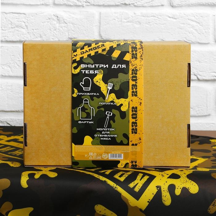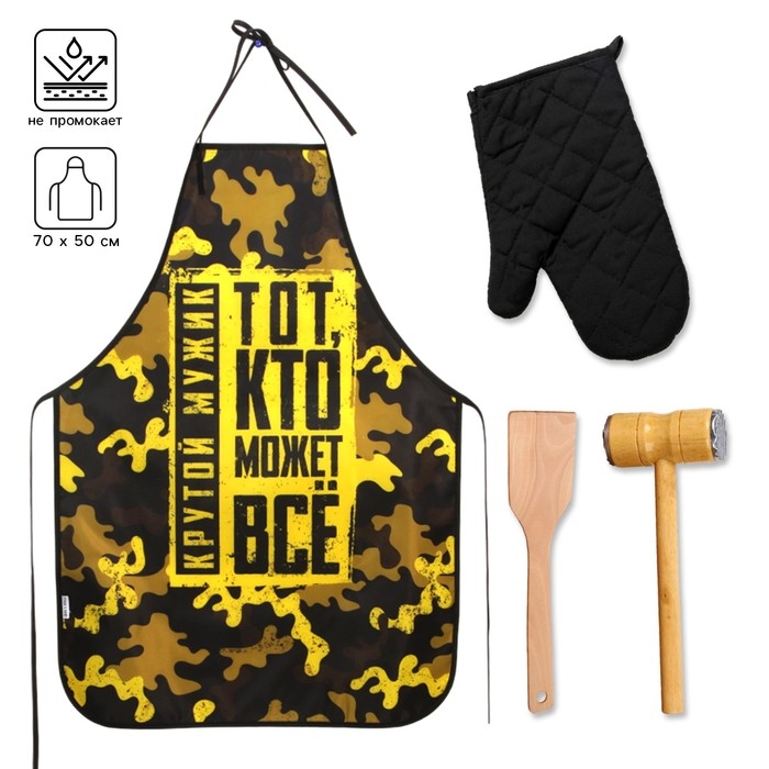 Большой кухонный набор "Мужик готовит лучше" (фартук, лопатка, отбивалка и прихватка)