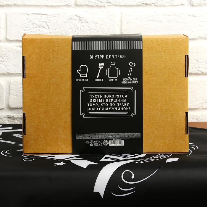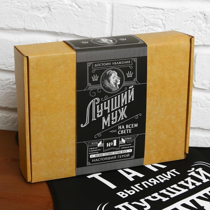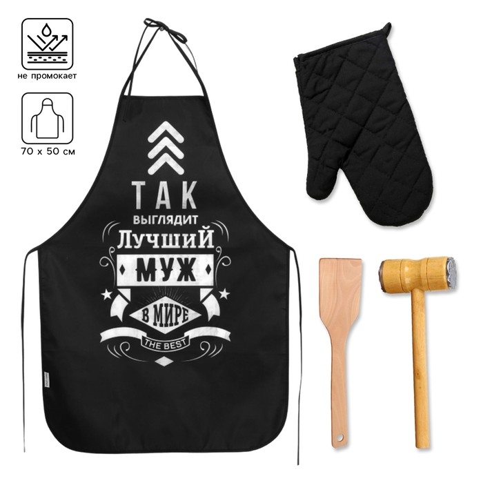 Большой кухонный набор "Лучший муж" (фартук, лопатка для жарки, отбивалка и прихватка)
