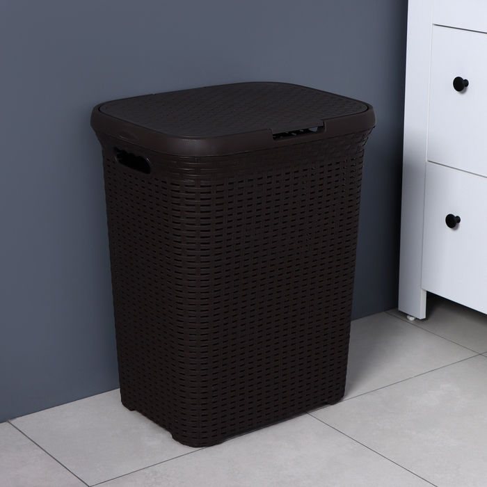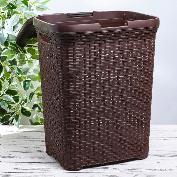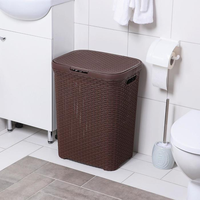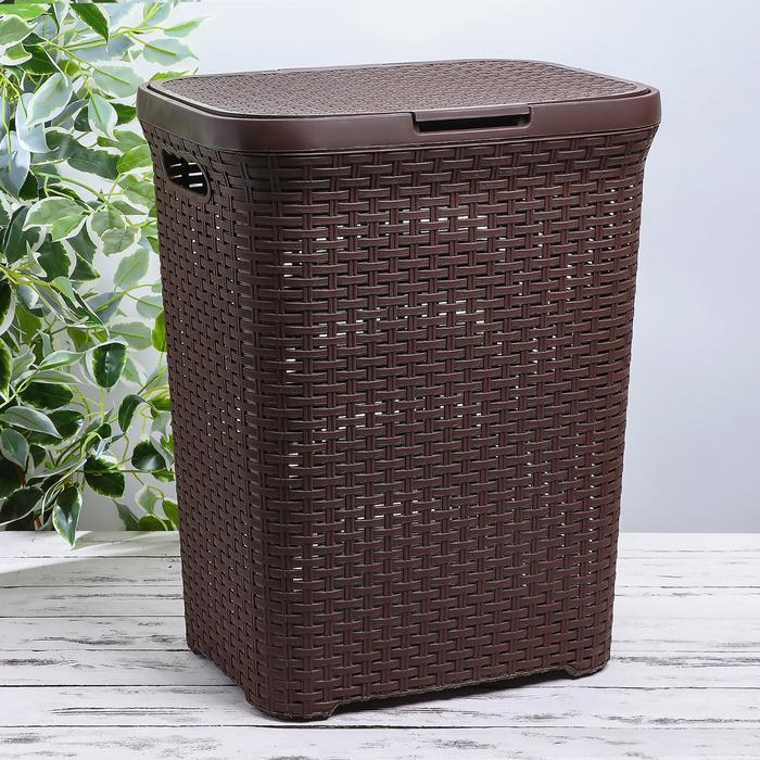 Корзина бельевая с крышкой «Ротанг», 60 л, 34×44×56 см, цвет микс