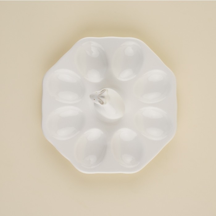 Подставка предназначена для размещения восьми яиц, что делает ее идеальным выбором как для большого семейного завтрака, так и для праздничного ужина. Несмотря на свою хрупкость, изделие отличается хорошей устойчивостью и долговечностью, однако рекомендуется ручная мойка для сохранения первозданного вида.