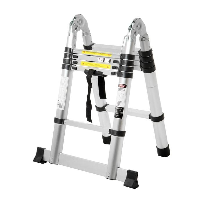 Стремянка-лестница телескопическая ТУНДРА, раскладная, алюминиевая, 1.6 х 1.6 м