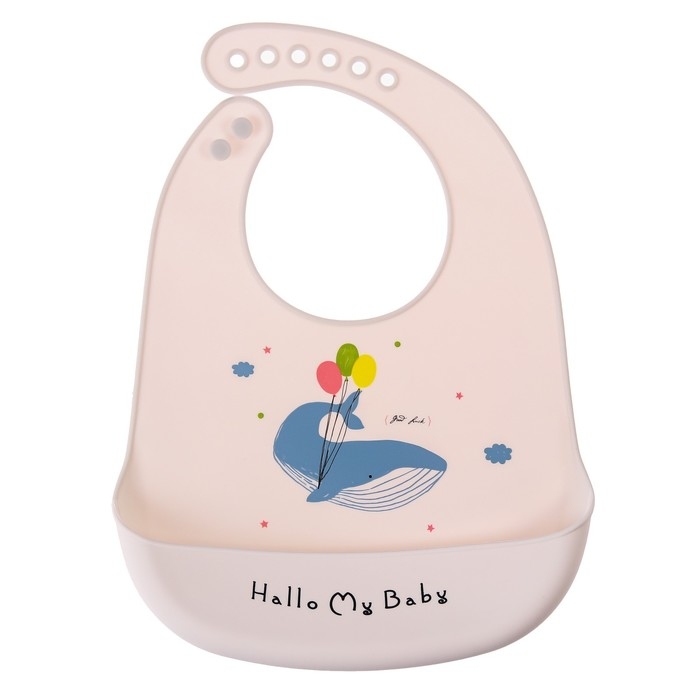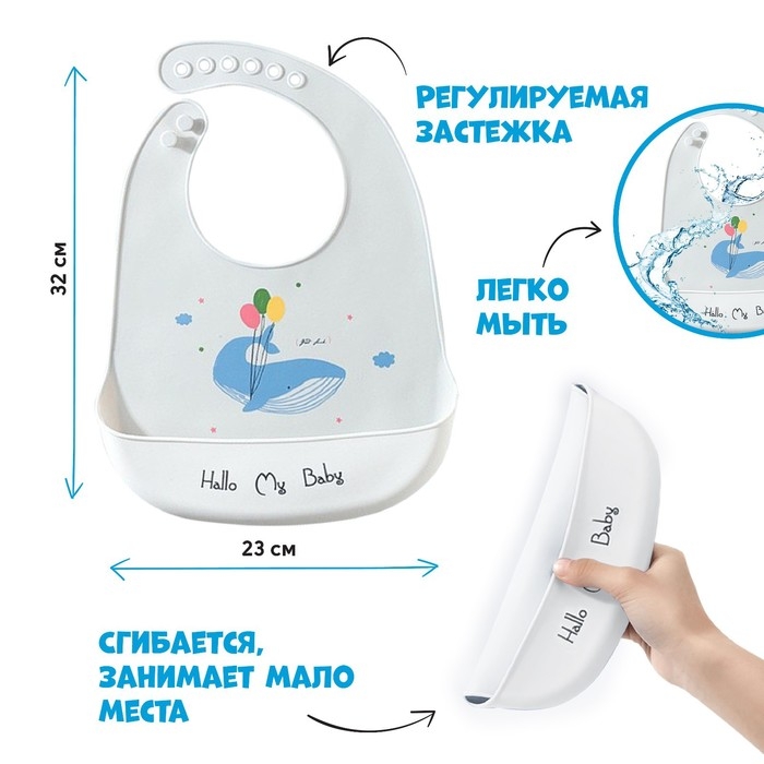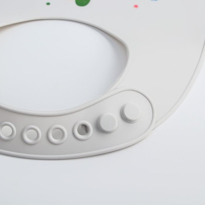 Нагрудник силиконовый, на кнопках, с карманом «Кит», цвет серый/белый