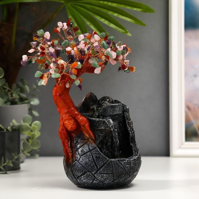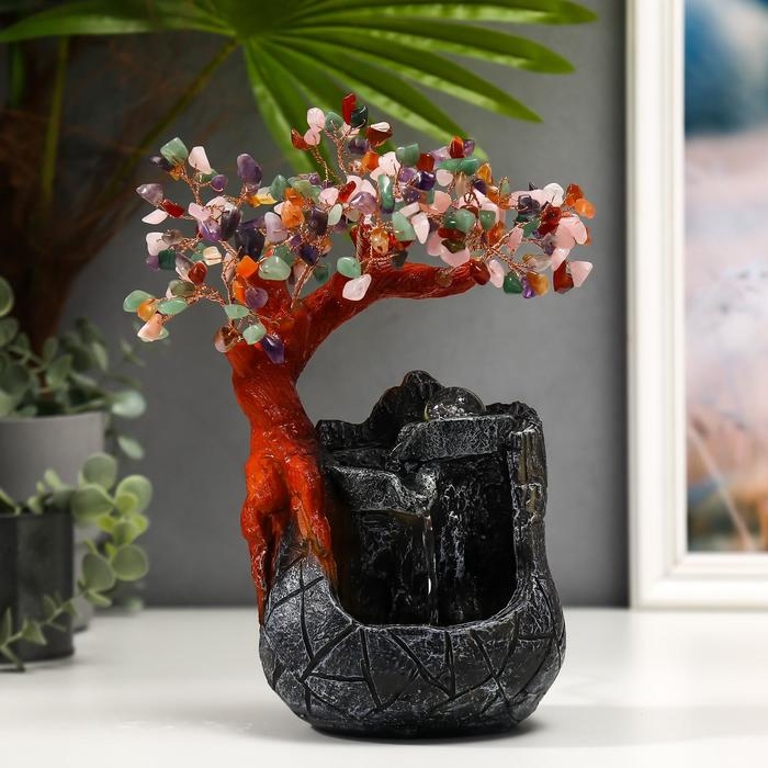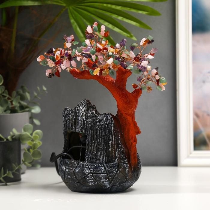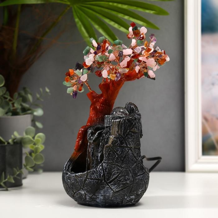 Фонтан настольный от сети, подсветка "Дерево с самоцветами и водопад" 180 камней 26х19х12 см