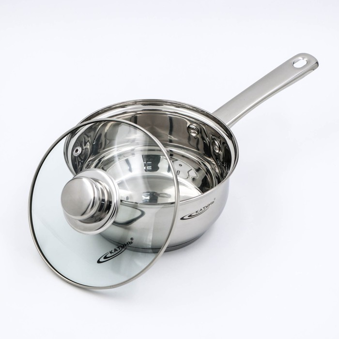 Ковш «Гретта», 1,6 л, d=16 см, капсульное дно, стеклянная крышка, металлическая ручка, индукция
