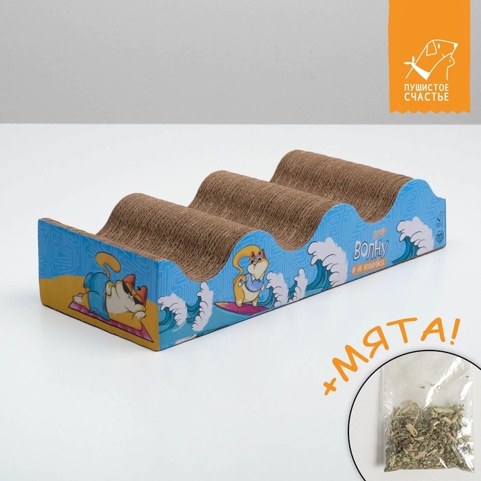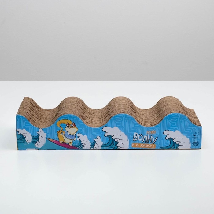 Когтеточка из картона с кошачьей мятой «Лови волну», волна с дном, 45 × 18 см