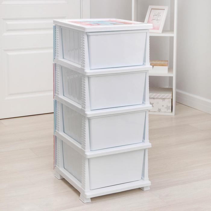 С помощью практичного пластикового комода вы правильно организуете хранение вещей. Изделие имеет жёсткую конструкцию за счёт цельных боковых стенок. Отсутствие острых углов делает его безопасным для ребёнка. Комод изготовлен из экологически чистого материала, не содержит вредных веществ.