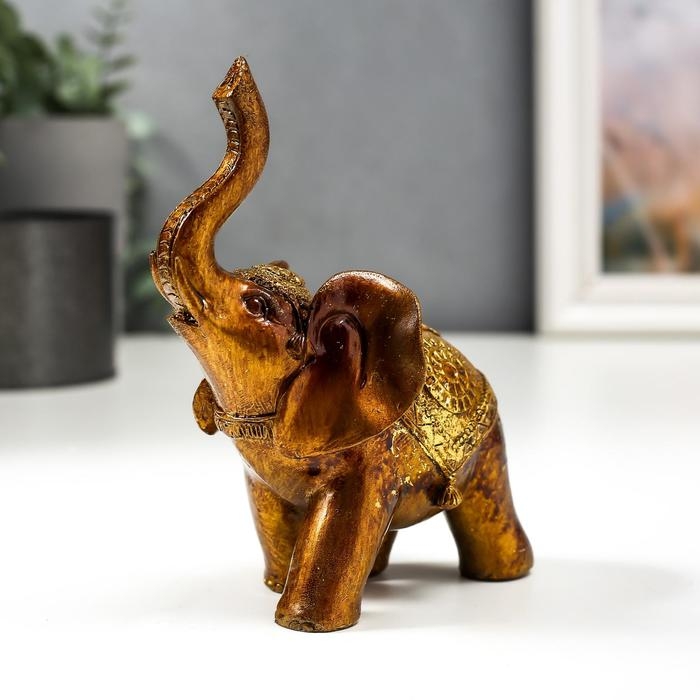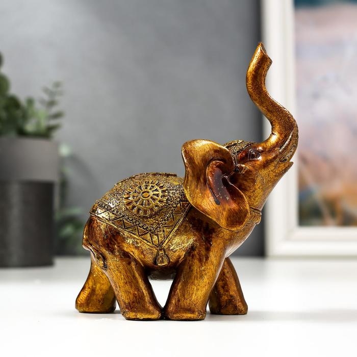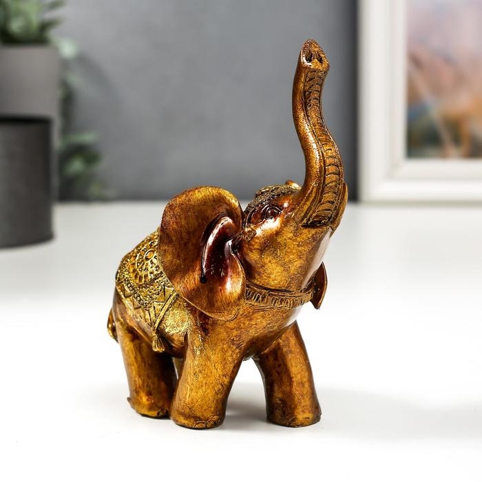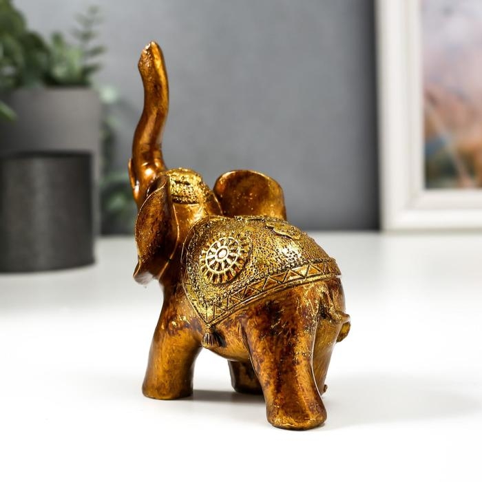 Сувенир полистоун "Слон в золотой попоне с узорами" лак 13х11х6,8 см