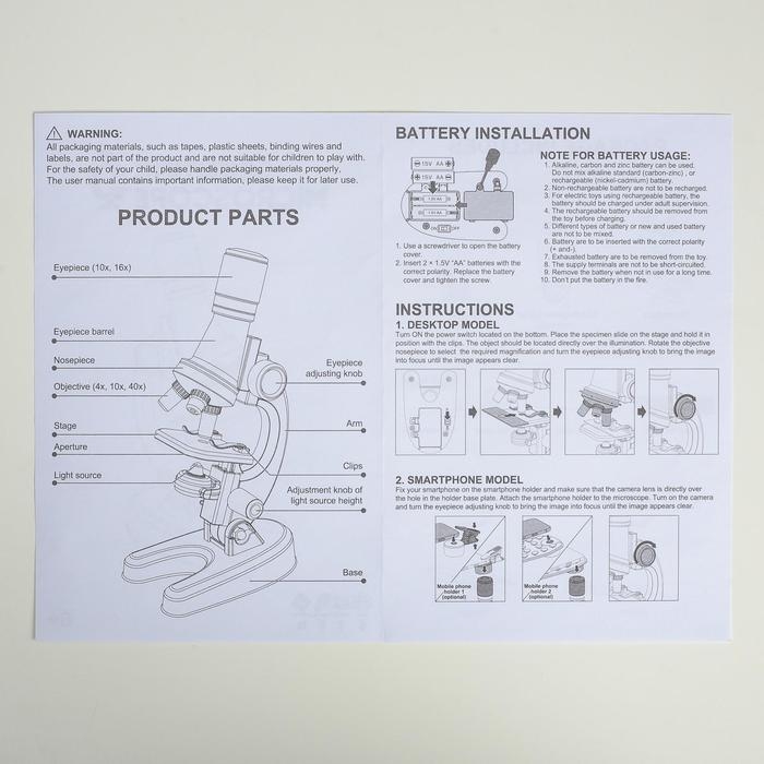 Микроскоп "Юный ботаник" кратность до х1200, белый, подсветка