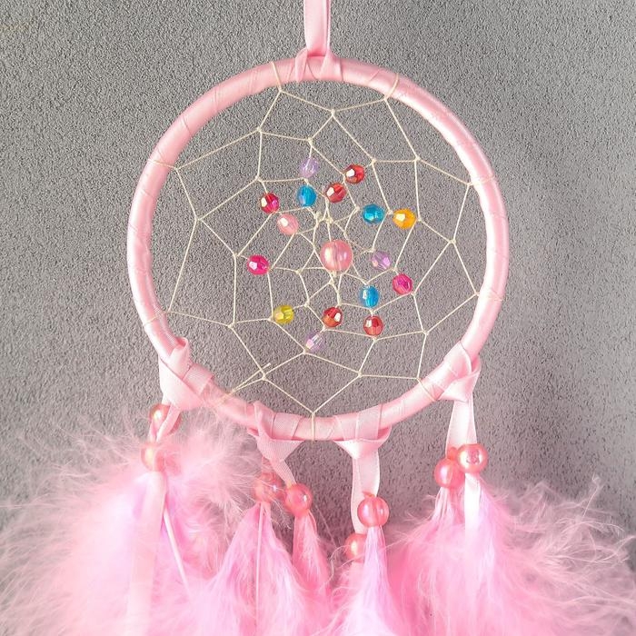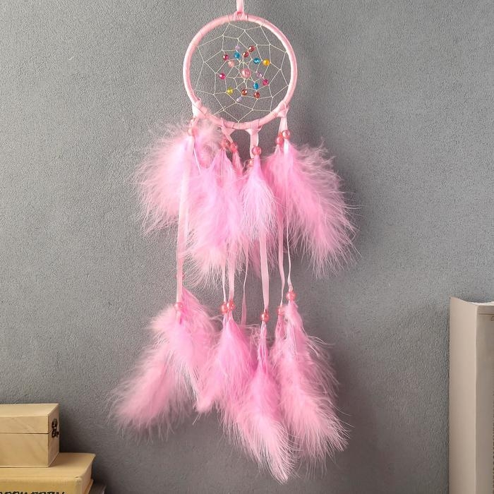 Ловец снов "Паутинка с жемчужинами" d=11 см светло-розовый 40 см